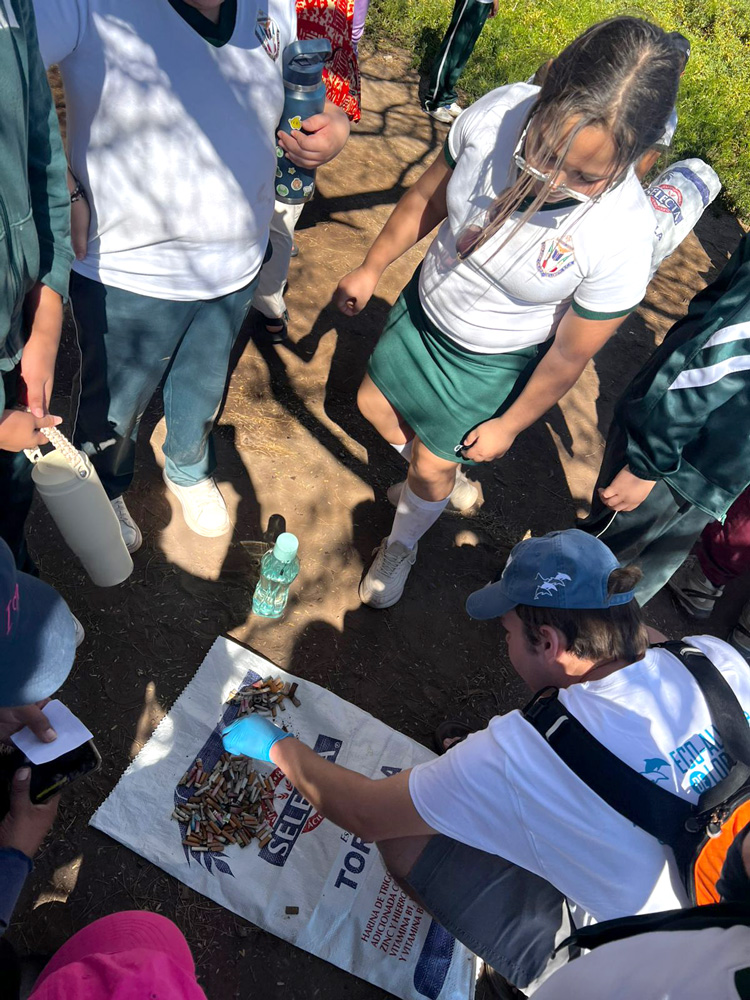 Coordinator of Environmental Education, Su Perez, invited the students and staff to lead teams of local children in a beach clean up, with an emphasis on collecting discarded cigarettes. The activity proved meaningful for participants of all ages, illuminating the environmental impact of everyday pollutants. Chemist Mario Jesus Moreno Reyes, led the students in dissecting the cigarettes to be cleaned, which will be repurposed into pencils during a future environmental activity, while explaining the exact process of material purification.